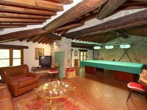 Con accessi esterni e in adiacenza alla parte abitativa 3 ambienti usati come cantina, magazzino e legnaia. Dall'altro lato dell'aia un ampio rimessaggio, un garage e loggia oltre terreni agricoli (circa 5 ettari) e annesso in pietra.