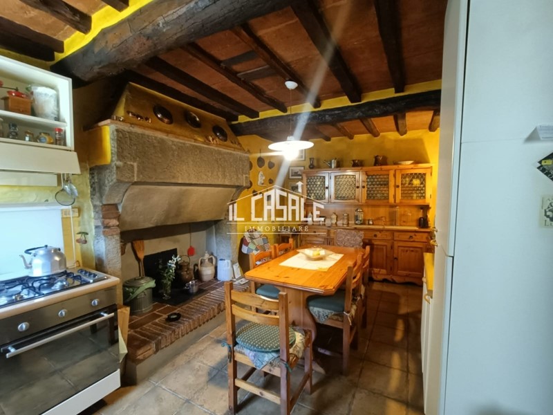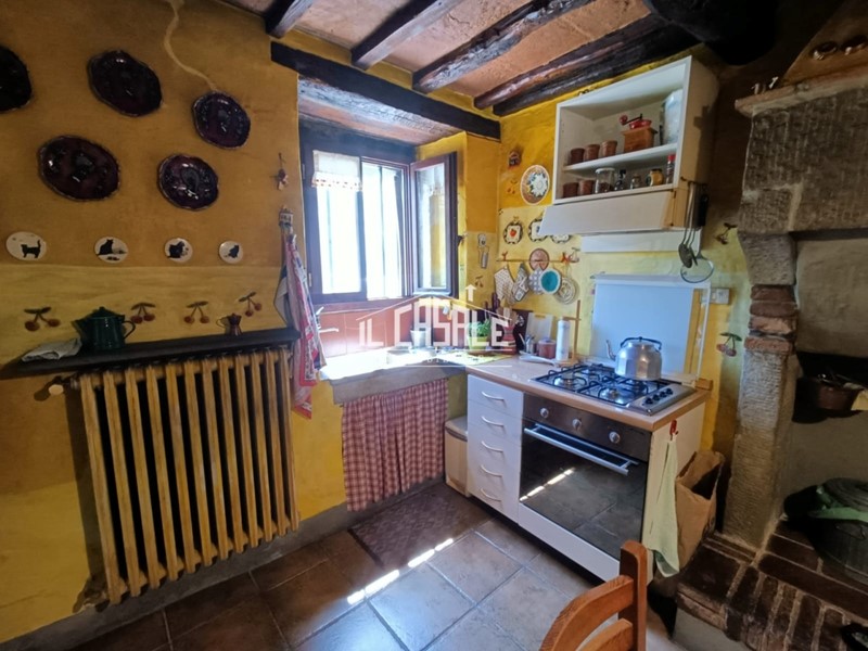 La struttura è estremamente caratteristica con la facciata in pietra, tipica delle nostre parti: si entra in un resede privato in parte in ghiaia e in parte verde che si sviluppa su due lati, quello principale di ingresso e quello laterale. L'abitazione è mossa su più livelli. Al piano terra troviamo la zona giorno separata tra cucina abitabile con focolare e splendido acquaio in pietra e salotto con secondo focolare, oltre che bagno e ripostiglio. Al piano superiore troviamo tre camere di cui una di passo sia per accedere alla successiva sia per salire nell'ultima stanza nella torretta. Anche a questo piano troviamo un comodo ripostiglio e un vano studio finestrato. DI proprietà anche ripostiglio con accesso esterno. Termosingolo a GPL con classe energetica "F" ed Ipe 232.02 kwh/mq*anno, acqua dell'acquedotto. Si raggiunge l'abitazione in campagna con strada asfaltata, l'ingresso ha cancello carrabile e si puo parcheggiare l'auto internamente alla proprietà. Ottima prima casa vicino ai servizi ma interessante anche come seconda casa.