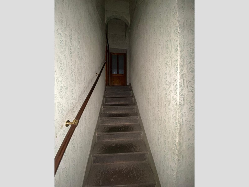Piano terra con ingresso condiviso (con un solo altro appartamento) e scala in pietra serena che conferisce eleganza e autenticità.
