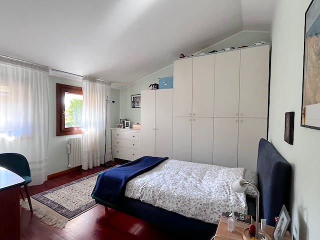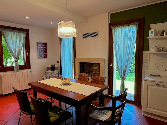 In signorile contesto residenziale di Ponte di Piave, proponiamo in vendita bellissima villa degli anni '90. Abitazione disposta su due piani fuori terra e composta da ingresso, ampio soggiorno, cucina separata abitabile con caminetto. Due camere matrimoniali e un bagno al piano primo. Camera matrimoniale ospiti e camera matrimoniale di circa 42 mq. con cabina armadio e bagno privato al piano mansarda. Al piano seminterrato troviamo garage doppio , bagno, lavanderia con centrale termica e dispensa. L'abitazione è dotata di impianto fotovoltaico da 6 KW con batterie d'accumulo da 15 KW, centralina per ricarica auto elettriche, infissi con doppia camera di nuova installazione e caldaia ibrida alimentata da impianto fotovoltaico o da metano . Pompeiana esterna di circa 20 mq. Giardino piantumato di circa 700 mq.