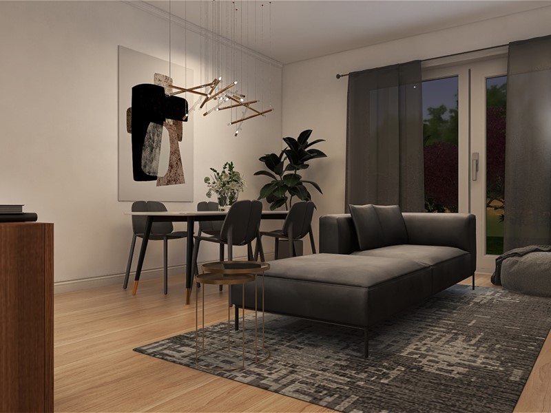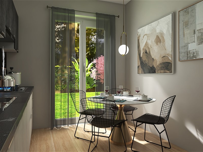 L'appartamento è caratterizzato da materiali idonei all'isolamento termico ed acustico, sia interno che esterno; riscaldamento/raffrescamento a pavimento con impianto geotermico; impianto di deumidificazione; predisposizione impianto antintrusione; infissi in PVC doppio vetro con gas, zanzariere e avvolgibili in alluminio coibentato elettriche; portoncino blindato; videocitofono; vasta scelta di rivestimenti e pavimenti.