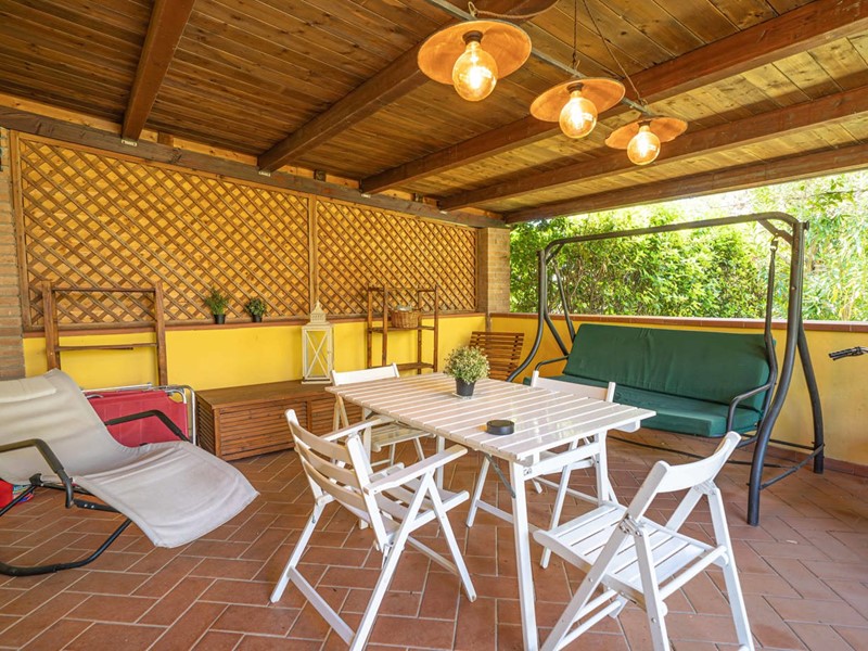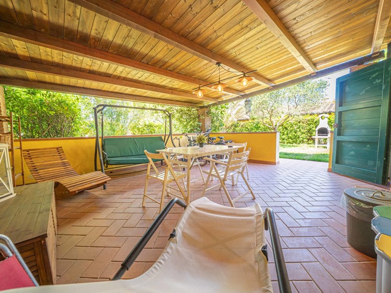 Uscendo troviamo un comodo porticato di circa 20 mq piastrellato e il giardino di 150 mq che si sviluppa su due lati dell'abitazione, nel quale passare piacevoli momenti di convivialità.