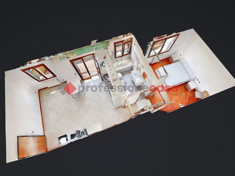 L'immobile è composto da 2 locali: un ampio e luminoso soggiorno con cucina a vista, una camera da letto matrimoniale e un bagno finestrato. La presenza del balcone rende gli ambienti ancora più ariosi e vivibili.