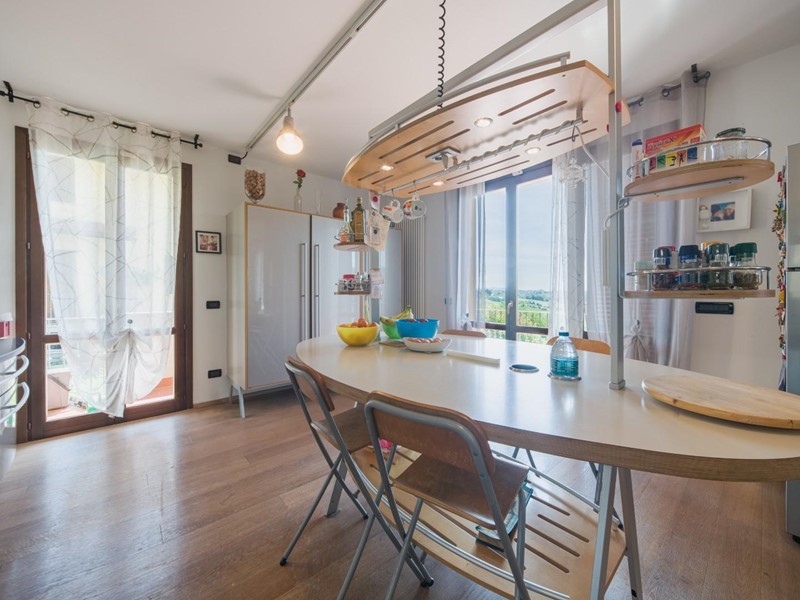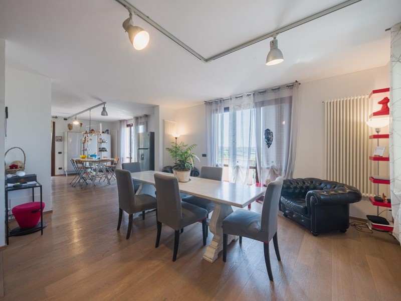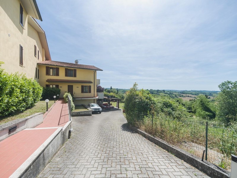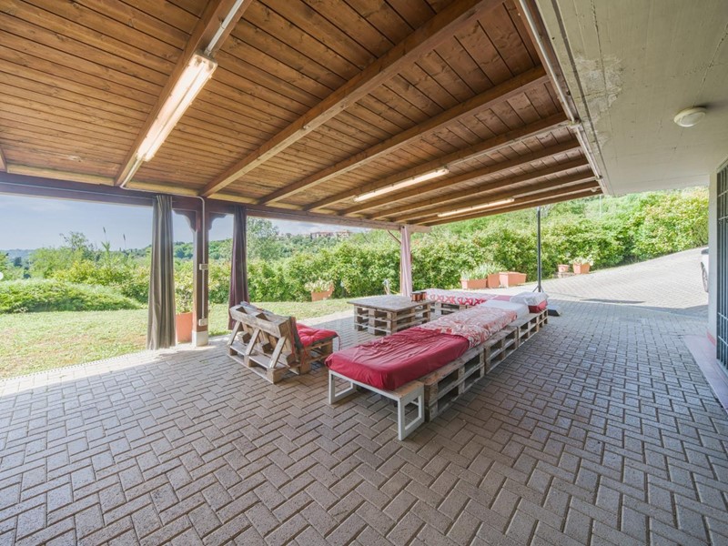 S.PIETRO BELVEDERE - In tranquilla zona residenziale con vista panoramica sulle colline villetta terratetto su tre livelli contornata da mq. 450 circa di giardino e corredata da mq. 1.000 circa di terreno agricolo. L'immobile ha ingresso indipendente sia pedonale che carrabile ed è composto al piano terra da ampia zona giorno open space di mq. 64 suddivisa in soggiorno con camino, cucina e zona pranzo da cui si accede alla terrazza su tre lati, al piano primo disimpegno notte, cameretta con cabina armadio, bagno con doccia e finestra, camera matrimoniale con terrazza, altra camera matrimoniale con bagno e terrazza, al piano seminterrato grande locale taverna di mq. 47 da cui si accede alla pergola di dimensioni 13X3,50 metri, disimpegno, locale di sgombero/lavanderia, bagno con doccia e finestra, garage/locale di sgombero di mq. 16. L'immobile si presenta in ottimo stato di manutenzione e con belle rifiniture. Sono presenti aria condizionata, zanzariere nel reparto notte, addolcitore e allarme. Una casa per vivere in tranquillità la campagna e adatta anche a più nuclei familiari.