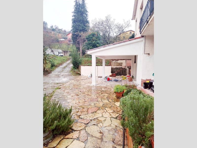 Al primo piano, un soggiorno ad angolo con camino ti accoglie, accompagnato da un balcone panoramico, un vano armadio (ex cucina) e un bagno. Il terreno circostante di 3.000 m² è completamente recintato e offre un accesso carrabile. La terrazza a livello panoramica è il luogo ideale per momenti di relax all'aperto, completa di forno e barbecue per le tue serate estive.