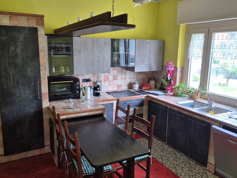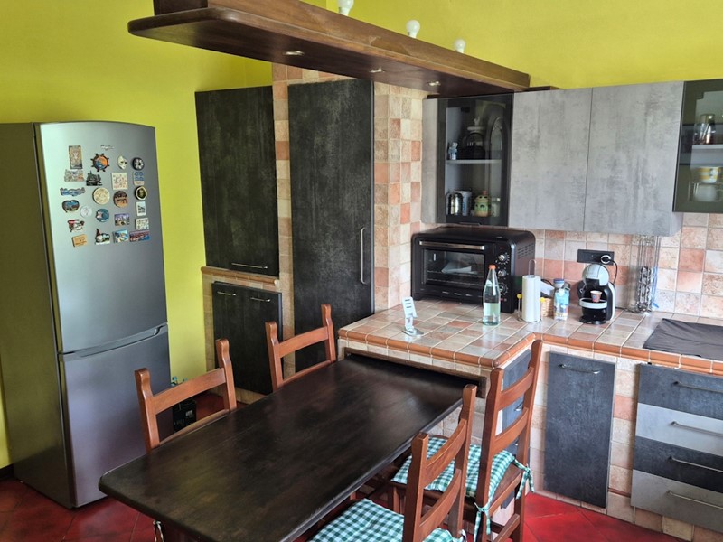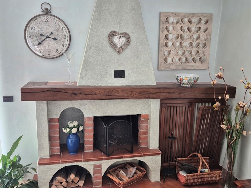 La cucina è abitabile, salotto luminoso con caminetto, tre camere da letto (di cui una adattata a studio) un bagno dotato sia di doccia che di vasca, e un terrazzino.
