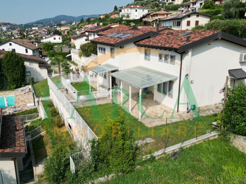 All’interno di un esclusivo residence con piscina, in splendida posizione pedecollinare con vista lago, proponiamo signorile villa bifamiliare disposta su due livelli oltre a piano interrato, circondata da un giardino privato di circa 250 mq.