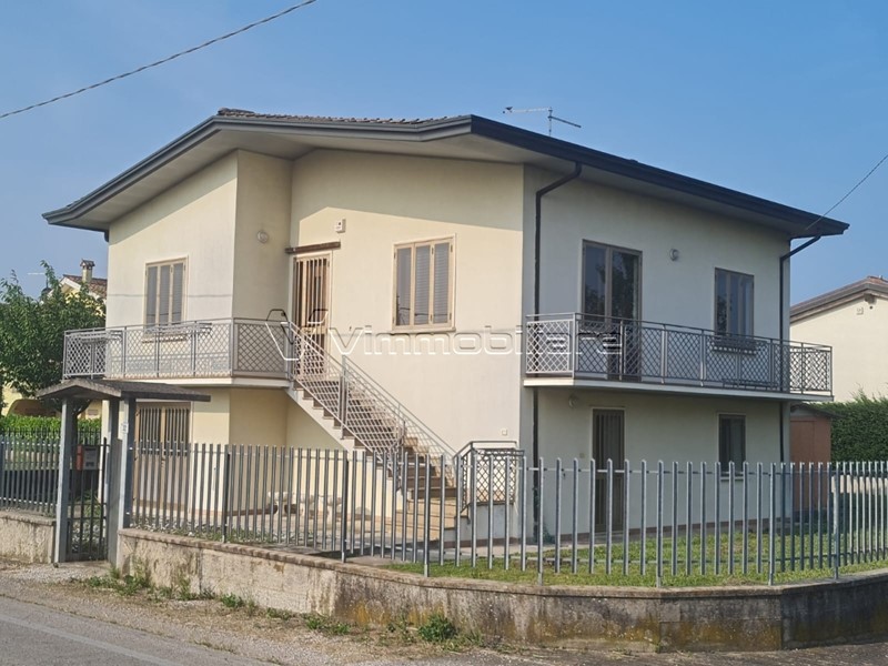 NOVENTA VICENTINA: appena fuori dal centro, proponiamo abitazione singola indipendente di 240 mq. comm. sviluppata su due livelli e su grande lotto di 705 mq. Composta da: cucina e soggiorno luminosi e separati, 2 camere matrimoniali (con possibilità di crearne una terza), 2 bagni finestrati di cui uno al piano terra ad uso lavanderia, 2 poggioli che collegano il reparto giorno e la zona notte, taverna, cantina, ripostigli e garage. Ulteriore box in muratura staccato dall'abitazione. Area a giardino privato di 435 mq. Casa ideale per chi ama l'indipendenza e gli ampi spazi. Ristrutturata parzialmente 10 anni fa. Da non perdere! Classe E EPgl,ren 166,60. Euro 210.000 trattabili