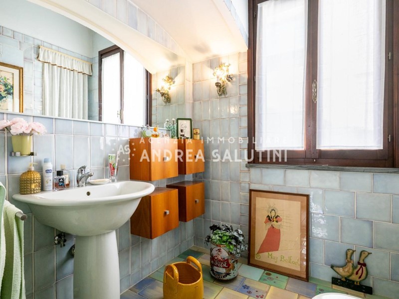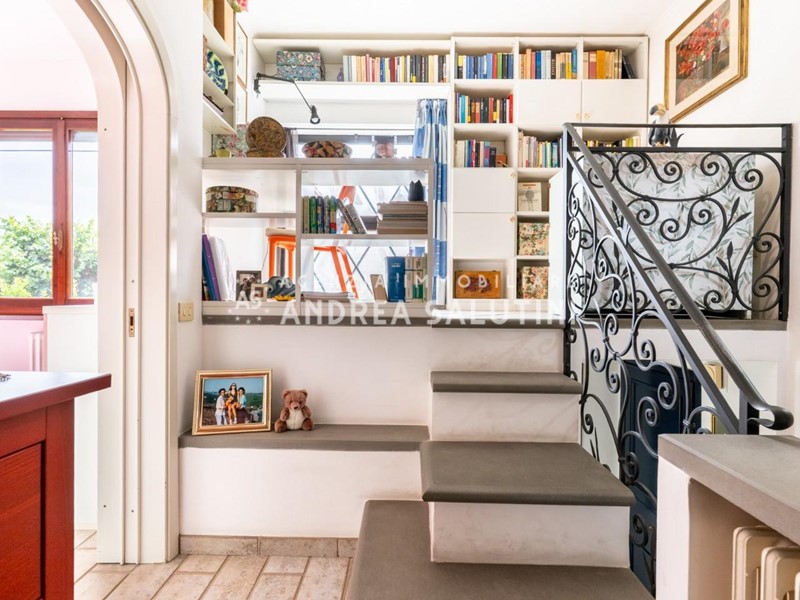 Al piano superiore due camere matrimoniali di cui una con loggia, due ampie camere singole, cucina soggiorno con terrazzo, doppi servizi. Immobile già diviso in due appartamenti con ingressi separati.