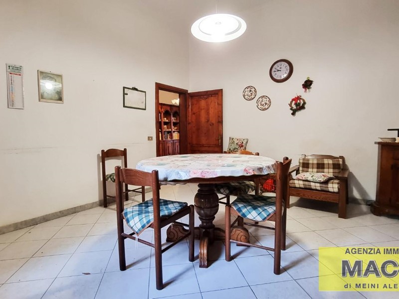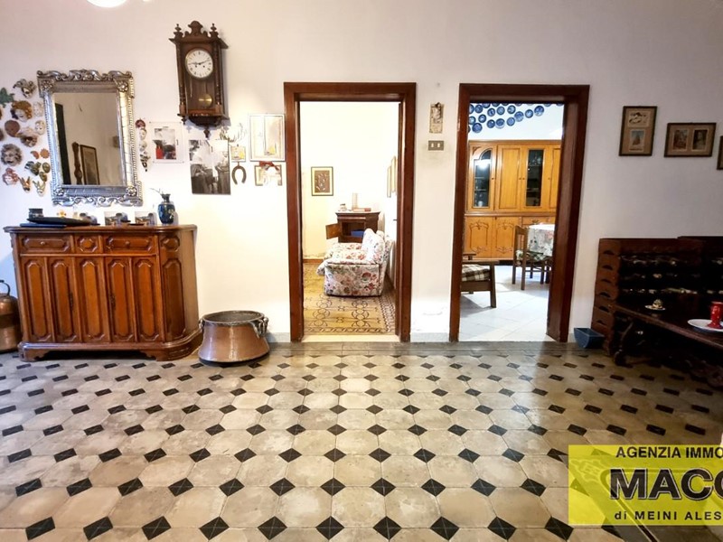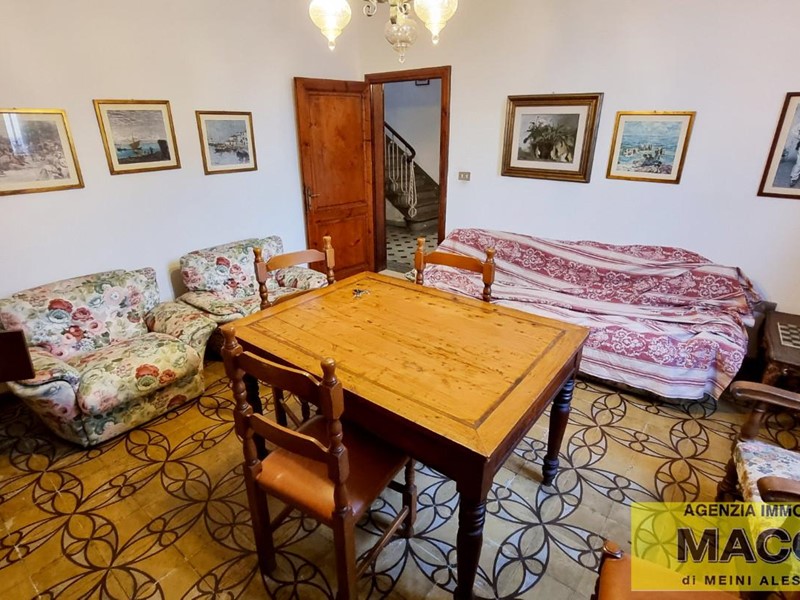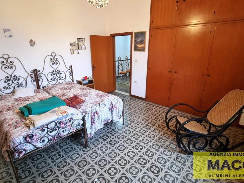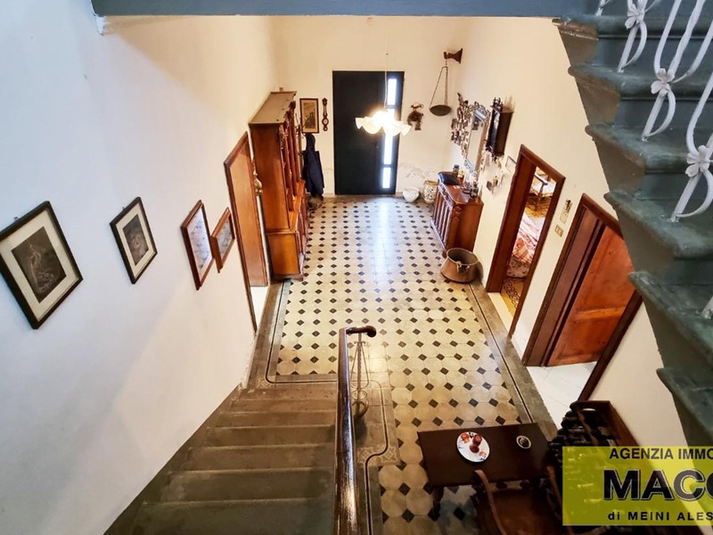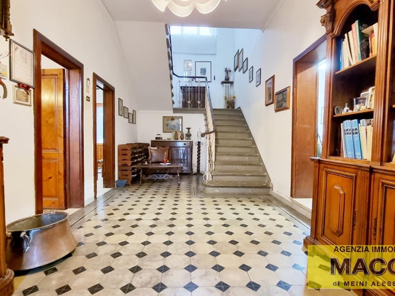 l'abitazione ha ingresso indipendente (accesso fronte/strada) ed è composta al piano terra da ampio e signorile ingresso, pranzo con cucinotto, sala ed ampio locale di sgombero collegato internamente che può fungere sia da ampio garage/rimessaggio, sia da ampio salone/locale pluriuso abitativo; si accede al resede esterno sia dal locale di sgombero e sia dalla sala da pranzo; da bella scala elegante si accede al piano mezzano dove è disposto un piccolo wc ed al primo piano dove sono disposte quattro camere matrimoniali e bagno padronale, il tutto disimpegnato da ingresso notte;