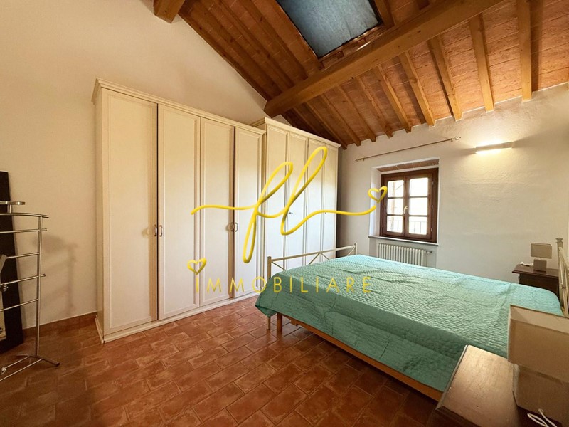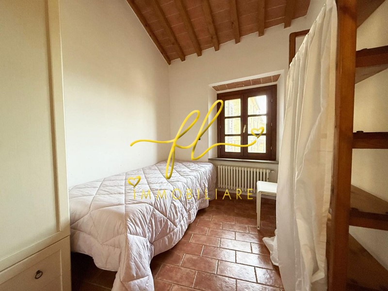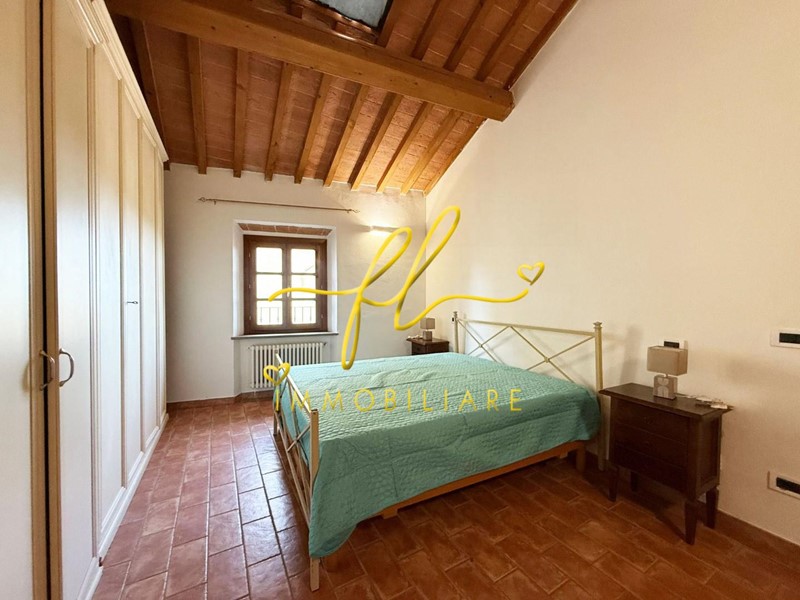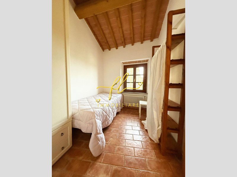 Al piano superiore, collegato da scala in cotto, si sviluppa la zona notte, composta da due camere, una matrimoniale ed una singola, entrambe con affacci panoramici sulle colline toscane, e un bagno.