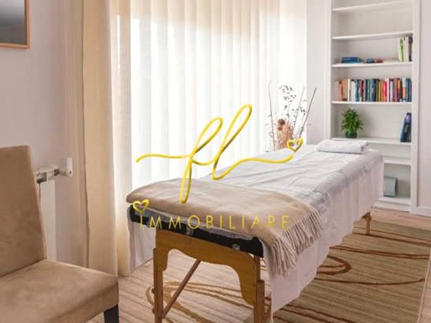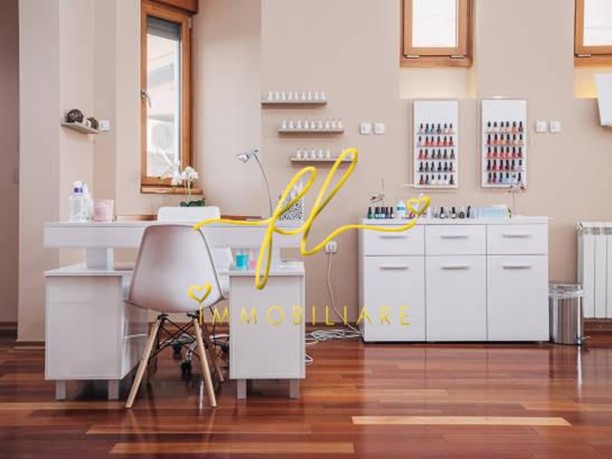 La sala accoglienza, molto luminosa, fronte strada. Così come il vano dedicato alla manicure. Proseguendo avrai a tua disposizione 3 cabine di cui una con doccia, ripostiglio, bagno disabili e lavanderia.