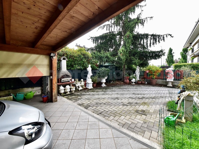 Completano la proprietà un ulteriore posto auto presente nel corsello di accesso agli immobili ed un ampio portico inserito nel giardino che consente di ampliare ulteriormente la disponibilità di posti auto coperti o, all'occorrenza, divenire un ampio spazio dedicato alla convivialità con numerosi ospiti.