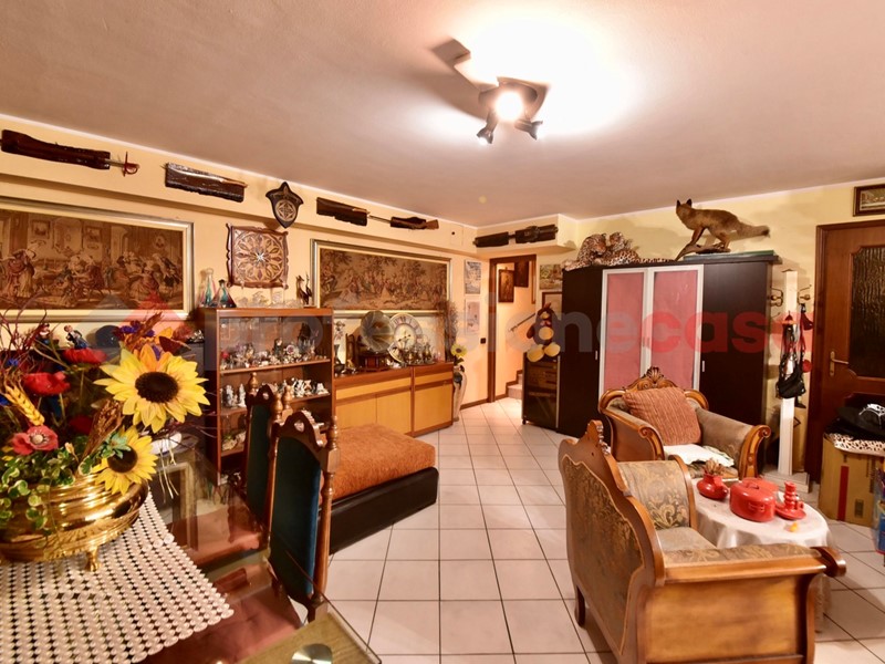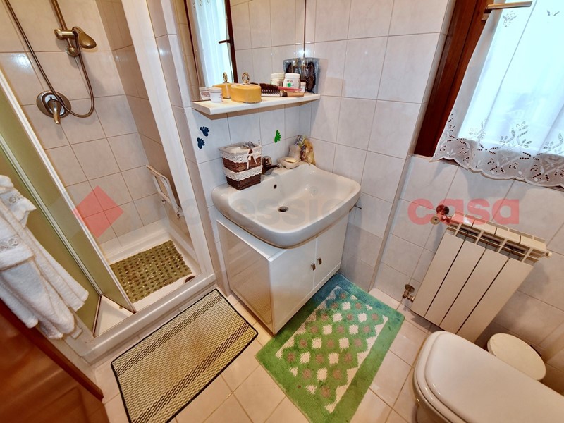 Al piano interrato troviamo un'ampia cantina dalla quale si accede ad una lavanderia e alla funzionale intercapedine pedonale, al piano terra troviamo l'ingresso principale che si affaccia sul soggiorno dal quale è possibile accedere ad una cucina abitabile con accesso al giardino; abbiamo poi la porta di accesso all'antibagno e da quest'ultimo è possibile accedere alle scale per raggiungere il piano interrato, al doppio garage ed al bagno stesso.