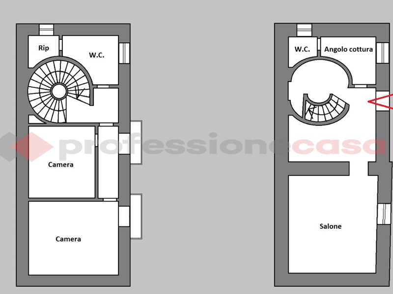 Al piano terra troviamo un ampio ingresso accogliente, cucinotto, ampio salone e bagno. Al primo piano, due camere da letto, un secondo bagno e ripostiglio. Le altezze generose (fino a 4,50 m) donano respiro agli ambienti e ampliano le possibilità di personalizzazione.