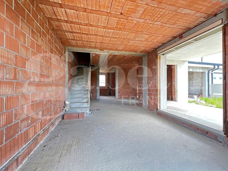 FOSSO', in centro paese, su recente lottizzazione, si propone in vendita ultima porzione di bifamiliare allo stato grezzo avanzato con spazi interni già tramezzati. La costruzione è del 2020 e dispone di una zona giorno con ingresso-soggiorno e cucina parzialmente a vista di 54mq, bagno-lavanderia finestrato e doppio garage; la zona notte è composta da 3 camere da letto, bagno finestrato e ampio terrazzo. Completa l'immobile uno spazioso giardino di circa 200mq impreziosito da un caratteristico portico. Soluzione ideale per chi cerca un immobile da completare con impianti e finiture personalizzate. Classe di riferimento A/4.