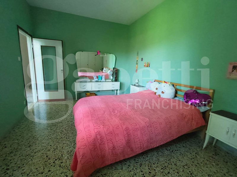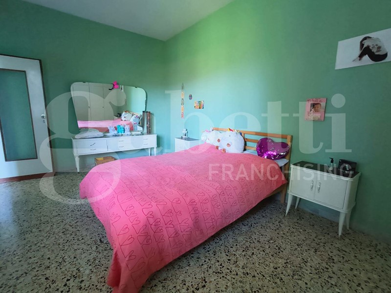 L'immobile è composto da ingresso su ampio disimpegno con armadio a muro, ampio soggiorno luminoso con angolo cottura, 2 camere matrimoniali, 1 cameretta con finestrella e cassaforte, bagno con vasca e veranda con ripostiglio.