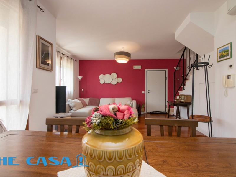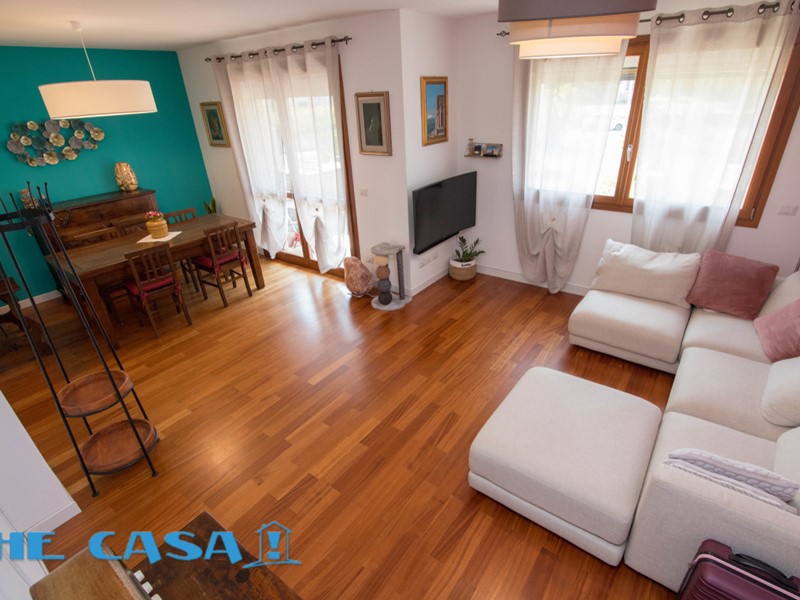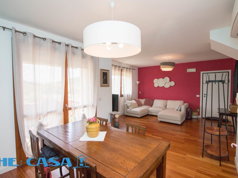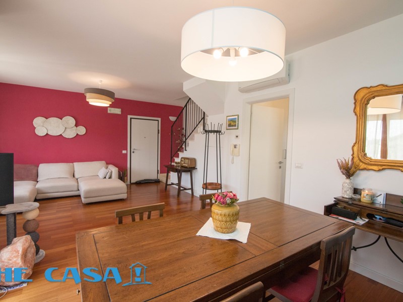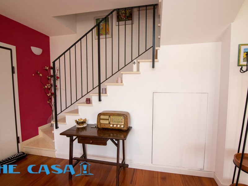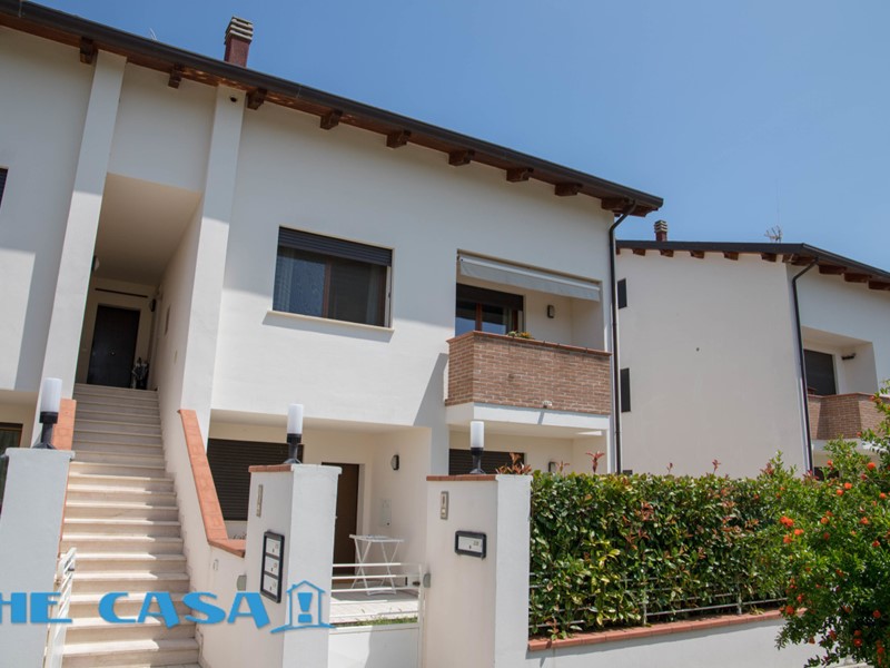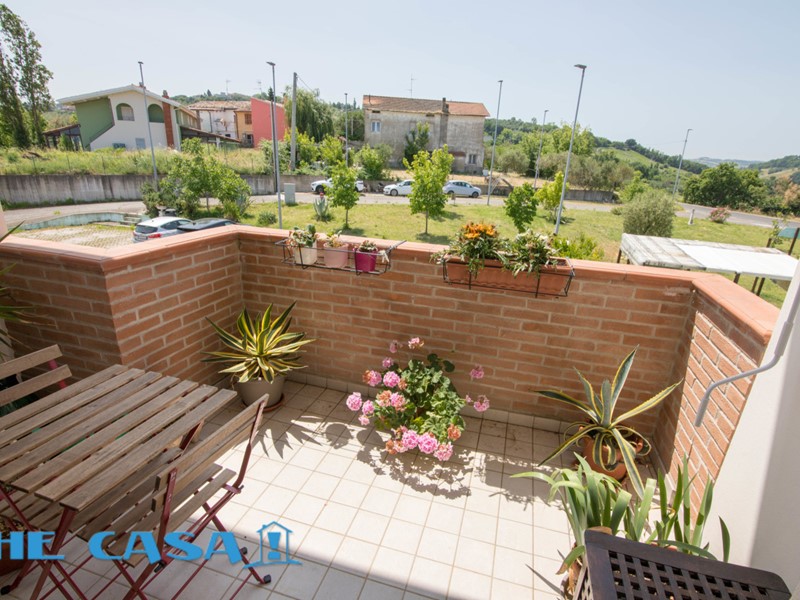 Proponiamo in vendita appartamento sito sulle prime colline di Morciano di Romagna, località Monte del Prete basso a 15 minuti dal mare. L'immobile fa parte di una villetta quadrifamiliare di recente costruzione, collocata di fronte ad un' area verde utilizzata dai proprietari come area gioco/relax. Una rampa d'accesso comune conduce all'ingresso direttamento sull'ampia sala che gode di vedute panoramiche sulle colline circostanti e può contare, come valvola di sfogo, sulla presenza di un bel terrazzino esterno. Il piano inferiore è completato da un disimpegno che consente l'accesso al bagno ed alla cucina abitabile, a sua volta dotata di un balcone vista mare. Nel sottoscala è presente una comodo ripostiglio. Il piano superiore è collegato da scala in muratura dritta e comprende 3 camere ed un bagno (con destinazione di sottotetto). Al piano seminterrato è presente un garage di 23 mq. La soluzione è di recente costruzione con riscaldamento a pavimento, cappotto esterno, condizionatori, parquet e finiture di pregio, con una buona classe energetica che assicura consumi contenuti. Per ulteriori informazioni e contatti, CheCasa! di Morciano, 0541.85.80.82.