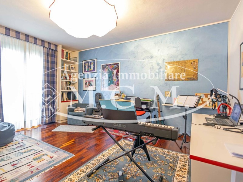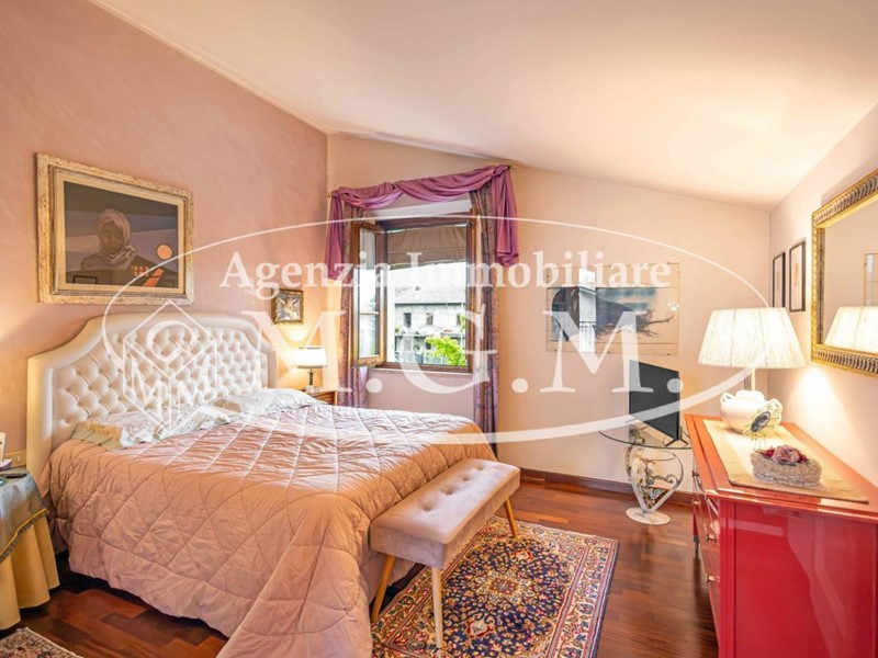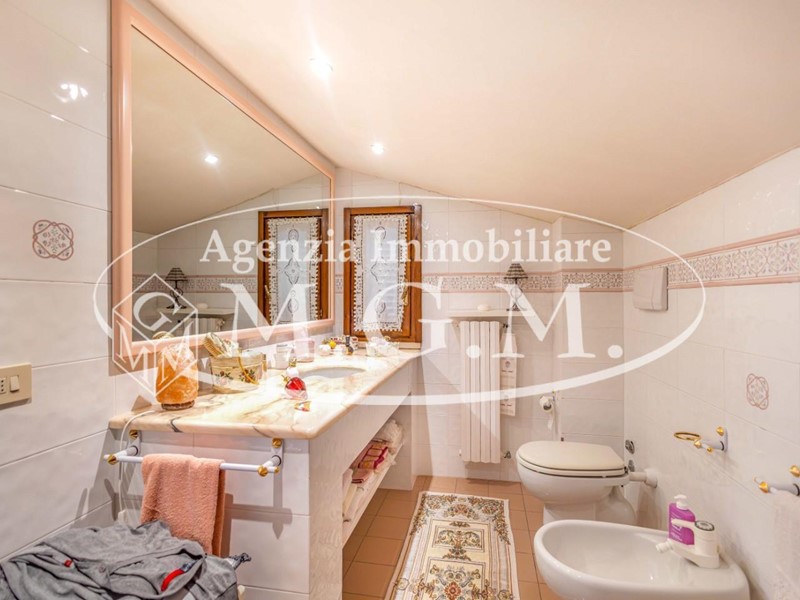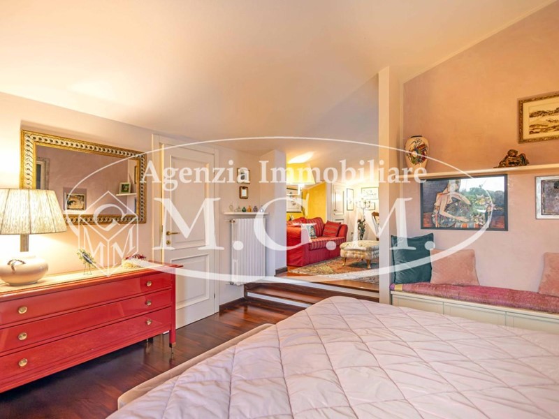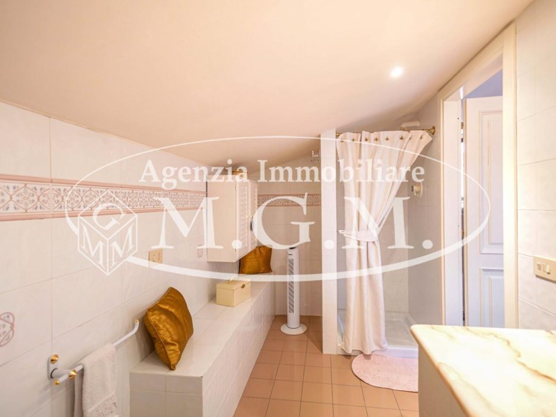 Al piano superiore si sviluppa la zona notte, composta da tre camere matrimoniali, tutte con accesso a terrazze private, e da un secondo bagno finestrato. Nella parte mansardata, con soffitto a tetto, è stato realizzato un ulteriore ambiente attualmente adibito a salottino privato, camera matrimoniale, ripostiglio e servizi.