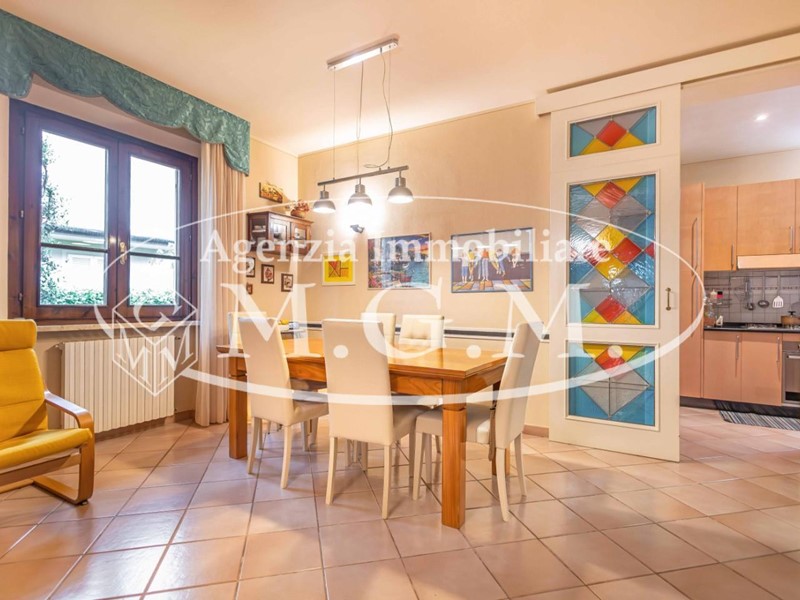 L’accesso carrabile e pedonale conduce a un interno accogliente e ben distribuito. Al piano terra ci accoglie un ampio ingresso che apre su un luminoso soggiorno, caratterizzato da un bel camino e da un’uscita diretta sul loggiato esterno, perfetto per godersi la bella stagione. La zona giorno prosegue con una sala da pranzo anch’essa dotata di camino, separata dalla cucina, che si affaccia su un altro loggiato, ideale per colazioni all’aperto. A completare il piano terra troviamo un bagno finestrato completo, una stanza versatile utilizzabile come studio o camera per gli ospiti, e un ampio garage direttamente collegato all’abitazione.