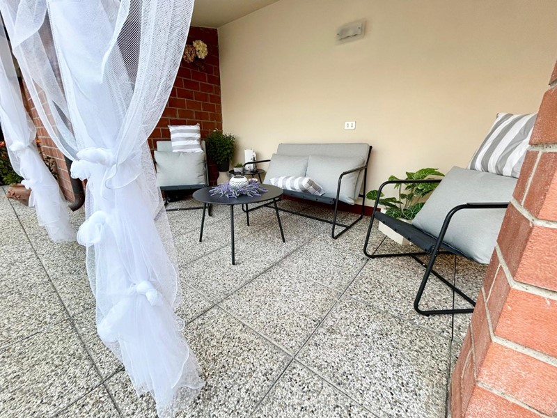 L’immobile si presenta in ottime condizioni manutentive ed è circondato da spazi esclusivi, tra cui un resede frontale e un giardino tergale pavimentato, perfetti per vivere all’aperto in ogni stagione.