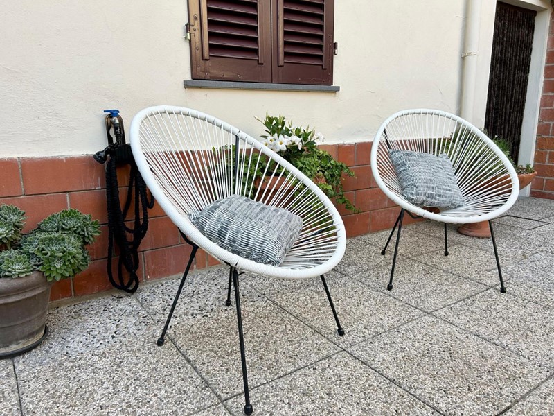Dalla cucina si accede allo spazio tergale esterno, completamente pavimentato, ideale per cene all’aperto e momenti di relax.