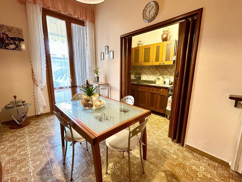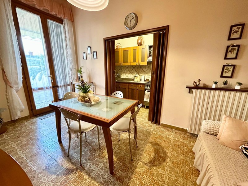 Si accede alla proprietà attraverso il resede anteriore, che conduce all’ingresso principale. L’abitazione si apre su un ampio ingresso, seguito da un luminoso salotto, una cucina abitabile con adiacente cucinotto, e un pratico bagno di servizio/ripostiglio.