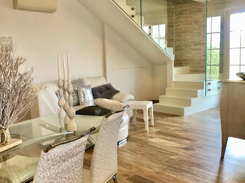 L'abitazione è composta da ampio soggiorno doppio, cucina abitabile, bagno, e camera/studio oltre 2 balconi al piano primo, bellissima scala conduce al piano superiore composto da 3 stanze utilizzate come camere e 2 bagni.