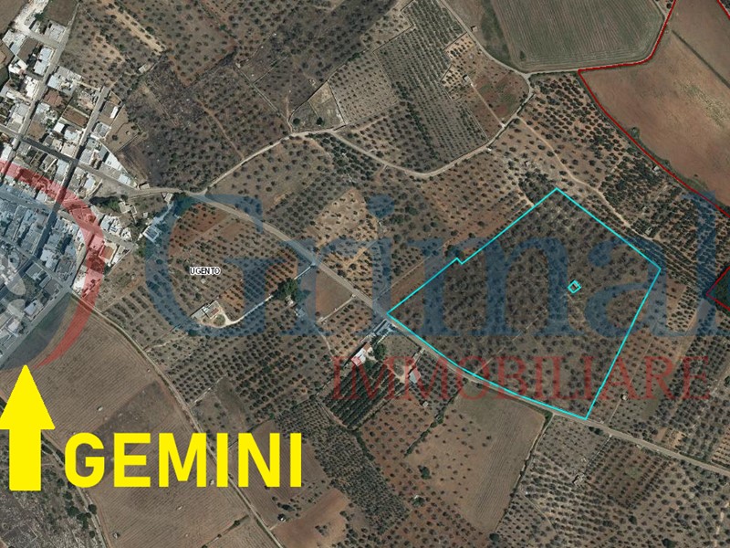 Su strada a scorrimento in periferia di Gemini, proponiamo ampio terreno in vendita. La sua superficie è poco più di 6 ettari. Il terreno è recintato da muretto a secco e colonna imponente d'ingresso su stradone privato, che permette d'arrivare al centro del suddetto e ad un casolare di pertinenza. La struttura è composta da vano volta a botte con nicchie, camino e scale per il lastricato solare da cui si padroneggia l'intero lotto. Dall'alto su può ammirare anche sul lato della stanza altri 2 vani senza solaio con accesso secondario. Sul terreno è possibile edificare essendo in zona E1 con indice edificabilità 0,03 mc/mq. Per maggiori info e dettagli contattateci: ugento1@grimaldifranchising.it oppure 342 9113267