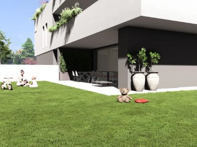 Nello specifico le SOLUZIONI AL PIANO TERRA con giardino privato di varie metrature, sono composte da soggiorno con cucina a vista, tre camere da letto a scalare, due bagni di cui uno finestrato e ripostiglio.