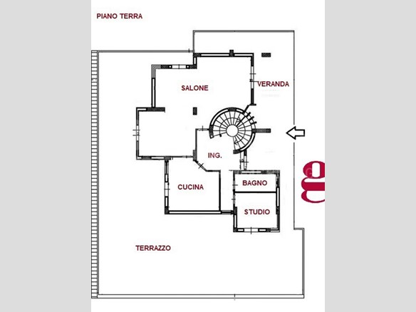 - piano terra: grande patio a livello di circa 230 mq con ingresso all'abitazione; troviamo un luminoso salone triplo, un'ampia cucina abitabile, camera studio e bagno;