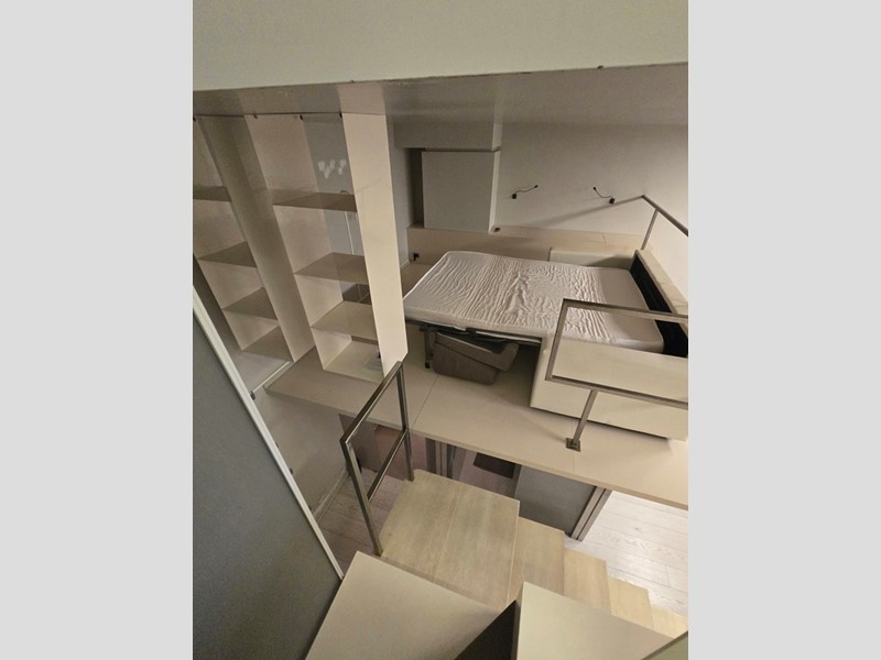 Rif. L53/24 - Eur Torrino, zona di Roma caratterizzata prevalentemente da abitazioni residenziali e dall'omonimo parco che ne rappresenta il polmone verde, ricca di attività commerciali, adiacente impianti sportivi, chiese e il grande centro commerciale denominato "Euroma 2", proponiamo in locazione in Via Amsterdam, in signorile stabile di recente costruzione, particolare e curato appartamento articolato su due livelli, collegati internamente da scala lineare di design. L'appartamento è composto al piano terra da soggiorno, angolo cottura separato e schermato, bagno e terrazzino con ripostiglio esterno e tende da sole; la comoda scala interna lineare collega il piano inferiore, servito anche da ingresso indipendente, dove è ubicata la camera con letto sospeso, una spaziosa cabina armadio a giorno e il bagno privato.
