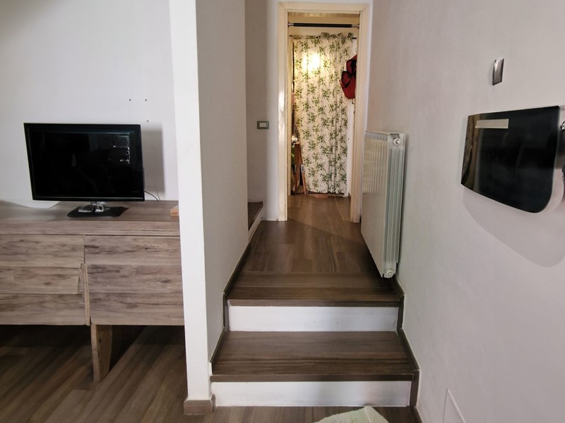 Proponiamo appartamento in stabile di 3 piani, disposto su 2 livelli, composto quanto segue: ingresso al piano terra con ampia zona giorno e cucina a vista, servizio e ripostiglio, scala interna che conduce al piano primo dove troviamo due camere, altro servizio e terrazza abitabile già attrezzata con ombrellone e zona lavanderia/cantina esterna con luce ed acqua. Abitabile subito!!!