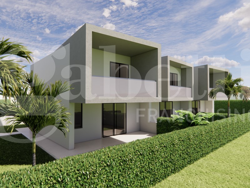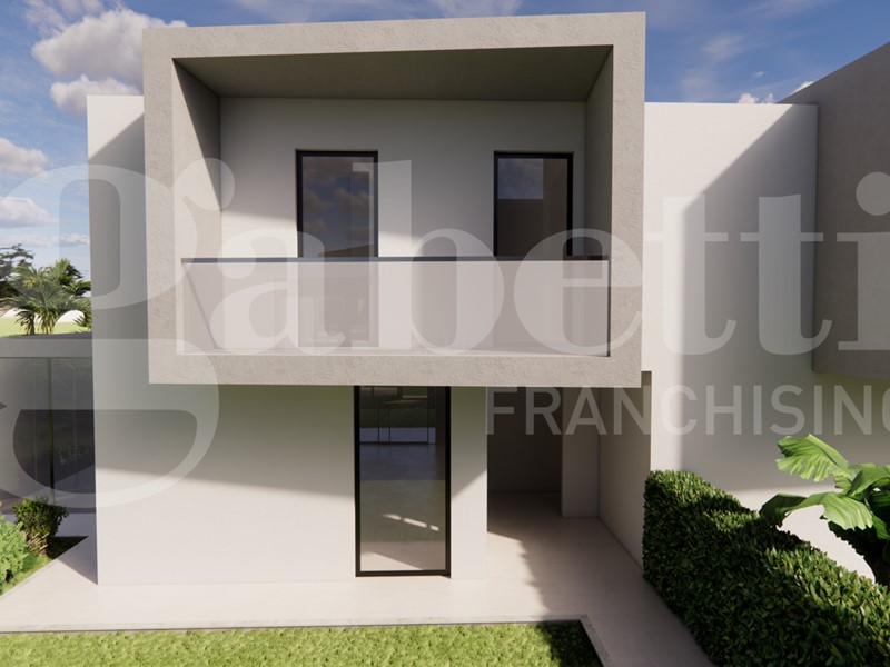 Con una superficie commerciale di 120 mq la soluzione sarà ottimamente divisa tra la zona giorno e la zona notte. Al piano terra troveremo un ampio e luminoso Salone con Angolo Cottura, che godrà di luce naturale grazie alla porta finestra che dà sul giardino, disimpegno e Bagno di servizio per gli ospiti. Al piano primo è stata progettata una meravigliosa suite matrimoniale con cabina armadio e bagno interno, disimpegno, ulteriori 2 camere sa letto singole e Bagno con la doccia. Tutte le camere godranno di uno spazio esterno.
