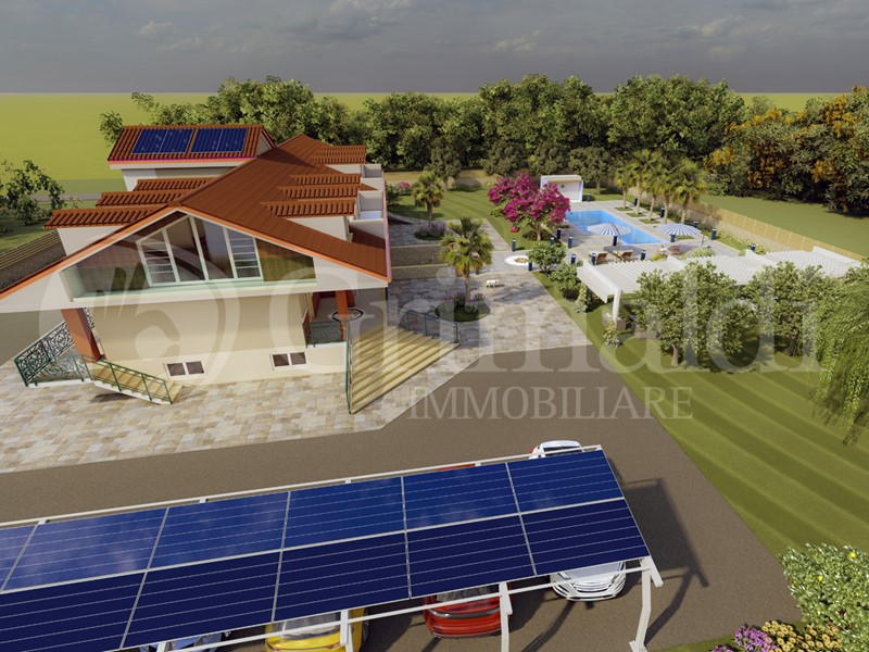 Vendiamo villa allo stato grezzo situata in contesto tranquillo e ben collegato. L'immobile si sviluppa su tre livelli, con una superficie calpestabile di circa 210 mq per piano, oltre balconi e terrazze, ed è circondato da un terreno di circa 2.000 mq.
