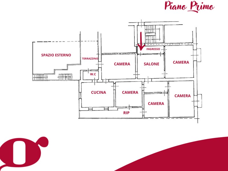 L'immobile ha una superficie di circa 210 mq, ben distribuiti in un grande soggiorno, cucina abitabile, cinque camere, un bagno e un comodo terrazzino, perfetto per rilassarsi o per creare un angolo all'aperto.