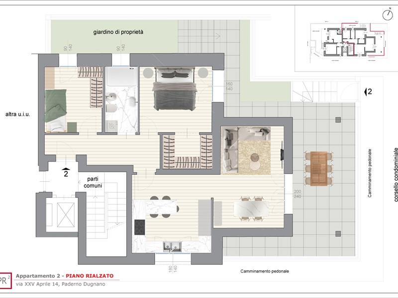CANTIERI E NUOVE COSTRUZIONI - CULTURA IMMOBILIARE SRL propone in vendita in esclusiva " RESIDENZA XXV" ubicata in Via XXV Aprile in Paderno Dugnano. In piccolo contesto residenziale di sole 4 famiglie realizzato con tecniche costruttive ed impiantistiche di nuova generazione in classe "A", proponiamo in vendita (RECUPERO FISCALE A FAVORE DELL' ACQUIRENTE SINO AD UN MASSIMO DI EURO 48.000,00) n. 3 abitazioni di 2 e 3 locali posti sia al piano terreno con porticati/terrazzi e giardino di proprietà, sia al piano primo con doppi servizi oltre ad un meraviglioso attico con quadrupla esposizione con annessi terrazzi. La costruzione vanterà un ottimo isolamento termico in grado di garantire un elevato confort abitativo; grande attenzione rivolta anche al fattore acustico con l'utilizzo di materiali costruttivi adeguati e serramenti che possono garantire un'ottima insonorizzazione delle unità abitative. La costruzione è posizionata "nel pieno centro del Comune di Paderno Dugnano". Le facciate esterne saranno realizzate in muratura con blocco Poroton P800 e porte in mattoni pieni la cui parete esterna verrà rivestita con sistema a cappotto in polistirene espanso sintetizzato so 14 cm; la sopraelevazione verrà invece realizzata con parete esterna in legno sp. 36 cm con efficienza termico/acustica, e finitura di intonaco plastico. Le pareti divisorie tra alloggi sono adeguatamente stratificate per garantire una totale fonoassorbenza ed una totale privacy. I serramenti esterni saranno in PVC Alphacan 70/80 (trasmittanza 1,27 w/mqk) di colore bianco nella sua parte interna e gris Agathe nella sua parte esterna, con profilo a 6 camere con doppia guarnizione unitamente ad un cassonetto coibentato in monoblocco ROLL COMFORT con tapparelle in alluminio coibentate. Pavimenti zona giorno e notte in parquet prefinito a due strati effetto rovere. Pavimenti dei bagni in gres porcellanato effetto marmo/pietra e marmo/cemento dim. 60 x 120.cm. I sanitari a sospensione marca "Scarabeo ceramiche" serie "Glam Twiste Hunge"; rubinetteria, soffioni e doccette marca "Alpi serte Blue" Impianto di ventilazione meccanica con recuperatore di calore a gestione autonoma, impianto di riscaldamento a pavimento e produzione di acqua/sanitaria del tipo "autonomo" a pompa di calore ad alta efficienza energetica. Impianto di condizionamento estivo del tipo "canalizzato" da incasso a soffitto per ogni singola unità abitativa. L'impianto fotovoltaico sarà adeguato alla normativa vigente. Impianto elettrico certificato con comandi marca BTICINO serie Matrix go con placche colore bianco. A completare, per ogni singola abitazione, un impianto di antifurto perimetrale completo e funzionante a garanzia della sicurezza abitativa. Ogni abitazione sarà anche fornita di locale cantina con possibilità di acquisto di posto auto e/o box.
