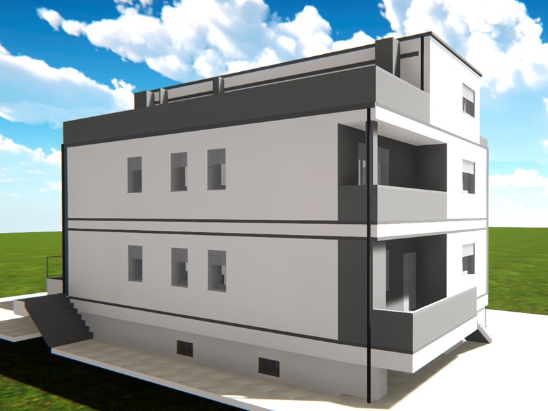 APPARTAMENTO 2 : meraviglioso tre locali posto al piano rialzato con tripla esposizione, terrazzo/porticato coperto al piano fronte zona giorno e piccola area a giardino di proprietà privata. Accesso pedonale autonomo, comodo ingresso, soggiorno, cucina abitabile con accesso diretto al terrazzo/porticato per complessivi 95 mq circa (abitazione) e 37 mq circa (terrazzo/porticato), cameretta, bagno finestrato ed ampia camera matrimoniale. A completare una porzione di area a giardino che si collega al camminamento perimetrale di proprietà che costeggia l'abitazione.