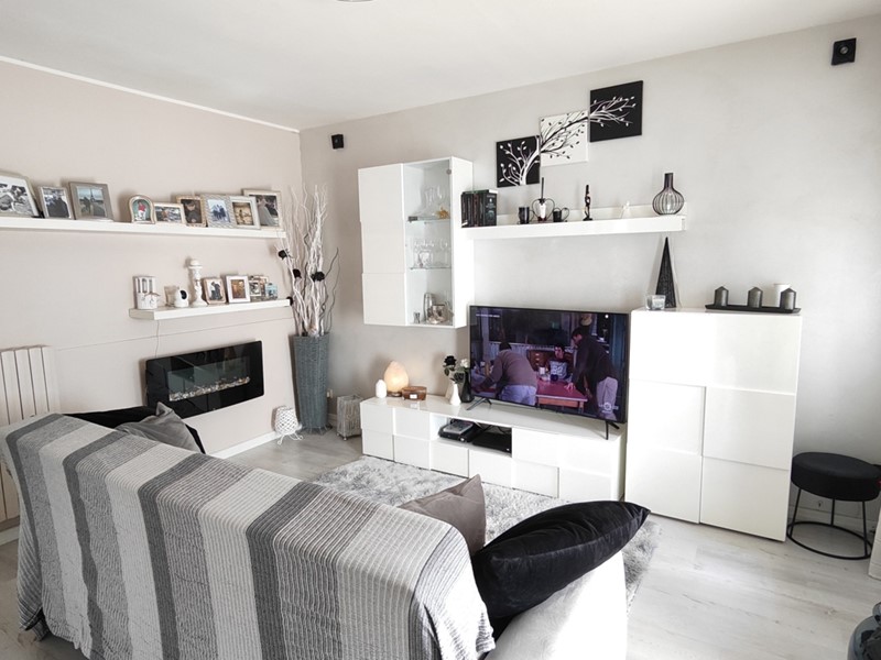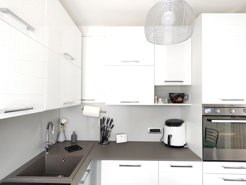 La soluzione è disposta su due livelli, al piano terreno accediamo direttamente nella zona soggiorno con cucina a vista e bagno finestrato con doccia. Al piano superiore troviamo la zona notte, composta da una camera matrimoniale e una singola.
