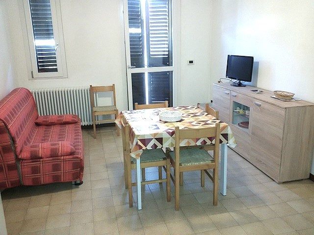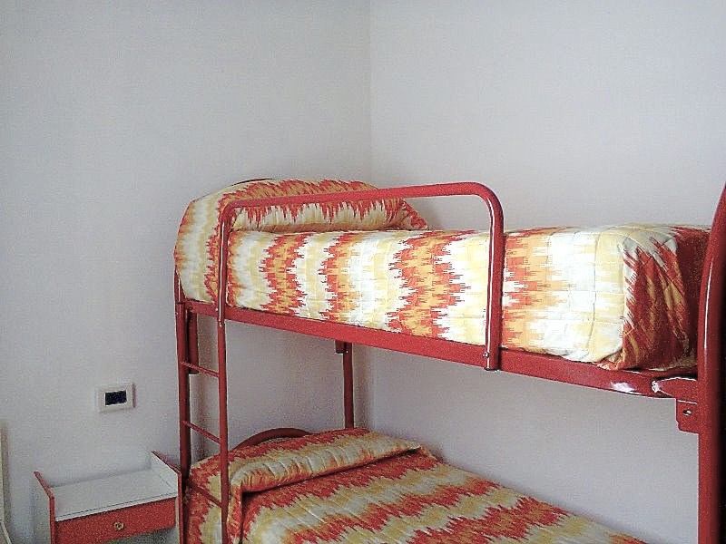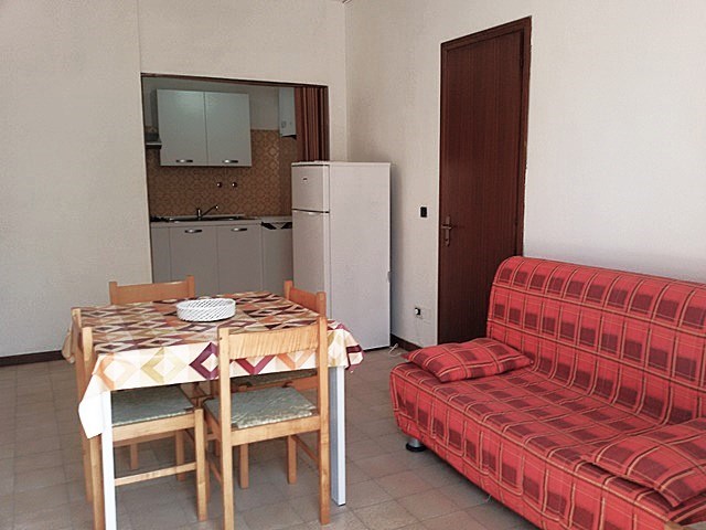 Piccola palazzina a 150 mt dal mare. L’appartamento al 1° piano è composto da soggiorno con divano letto matrimoniale e angolo cottura, una camera matrimoniale, una camera con letto a castello, bagno finestrato con box-doccia, piccolo balcone.