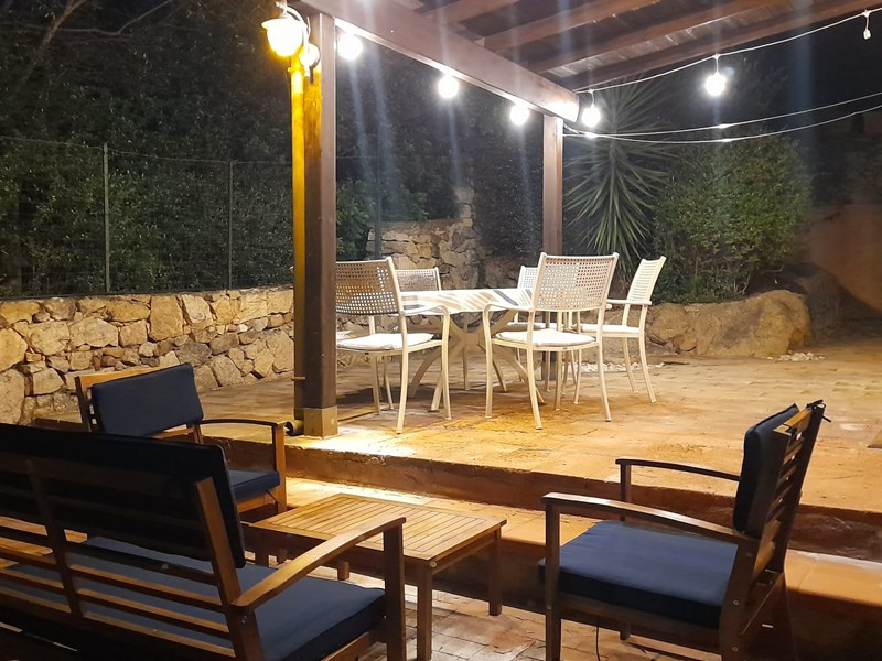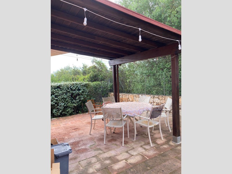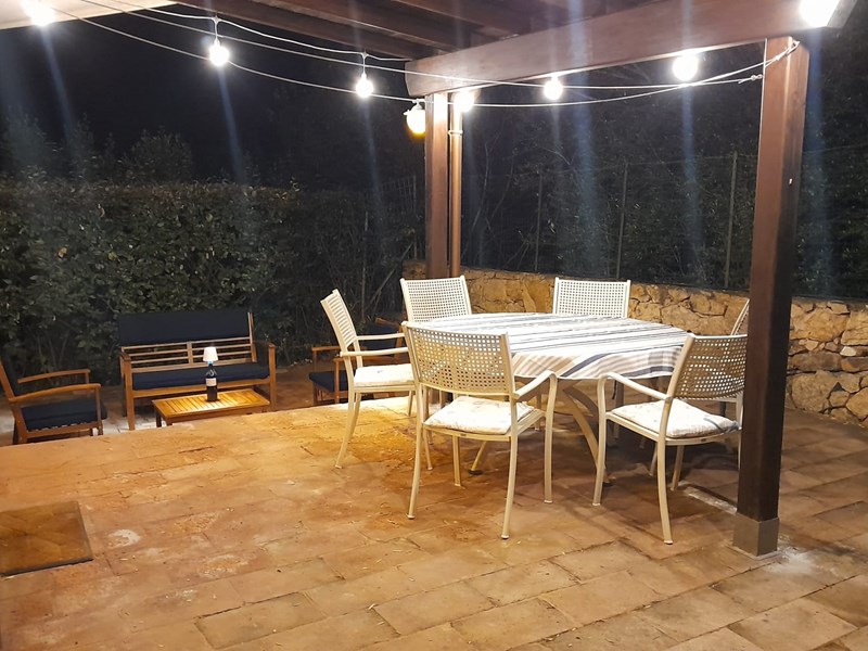 Ampio giardino su 2 lati di oltre 100 m/2 con veranda parzialmente coperta da pergotenda.