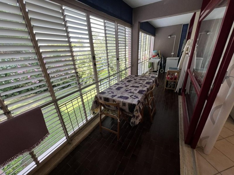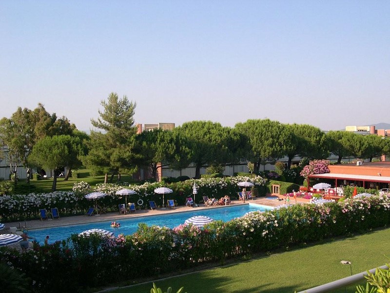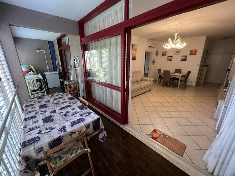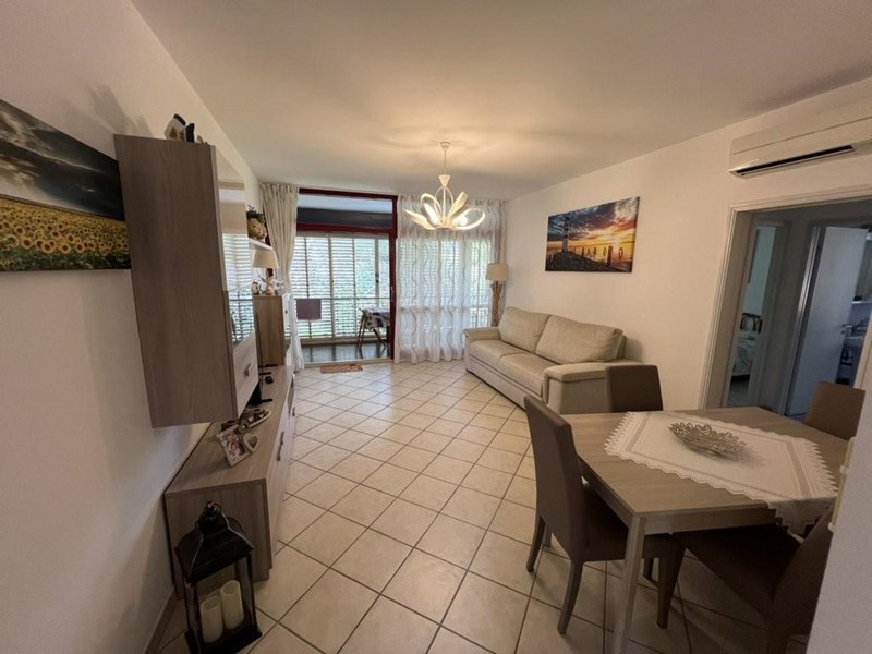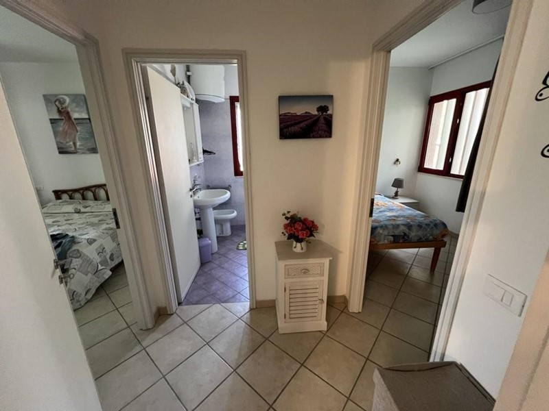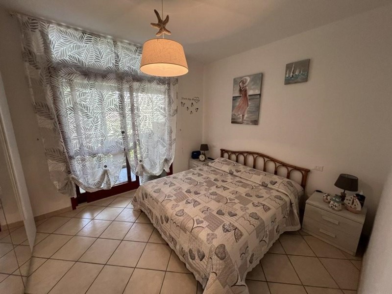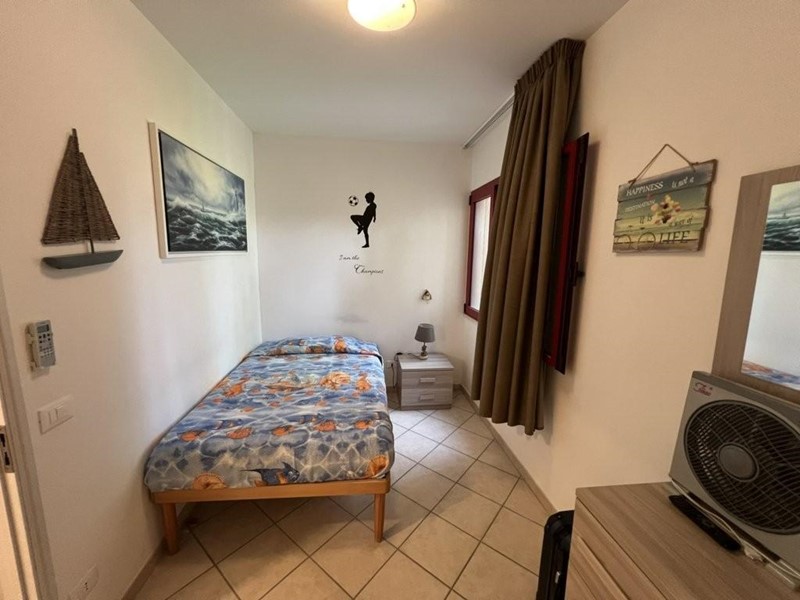 In residence con piscina immerso nel verde, a 300 mt dal mare, al piano primo, angolare, appartamento così composto: cucinotto, soggiorno-pranzo, camera matrimoniale, camera singola, bagno con doccia e cabina e ampia veranda. L'appartamento si presenta in perfetto stato essendo stato ristrutturato completamente di recente. Viene ceduto completo di arredi di buona qualità. E' inoltre dotato di climatizzatori caldo-freddo in tutte le stanze. l'esposizione della veranda è a nord e quindi è molto fresco e rivolto verso la zona verde e quindi posizione molto tranquilla.