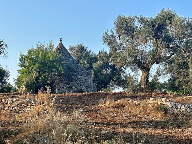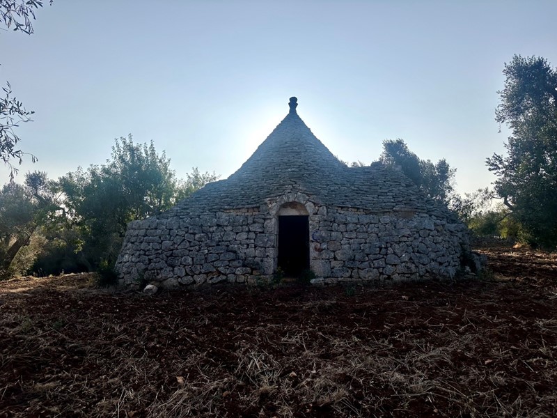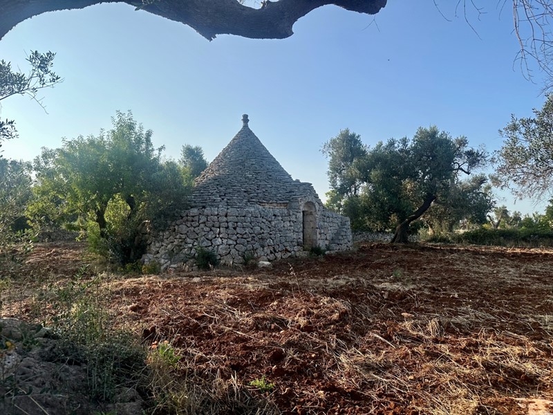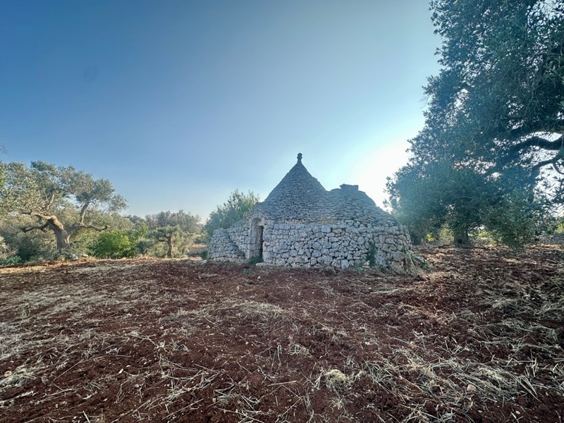 Caratteristiche: terreno di 6400 mq delimitato da muretti a secco e trullo a 2 coni composto da 2 sale e una alcova.