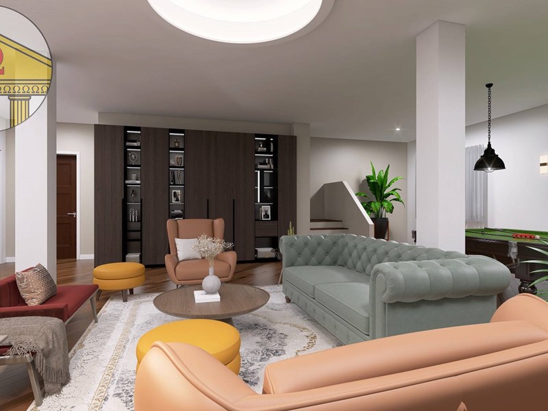 Piano Interrato (H. 3 metri - Spazi Straordinari): Una vera e propria area relax e hobby con altezze fuori standard (h. 3 mt):