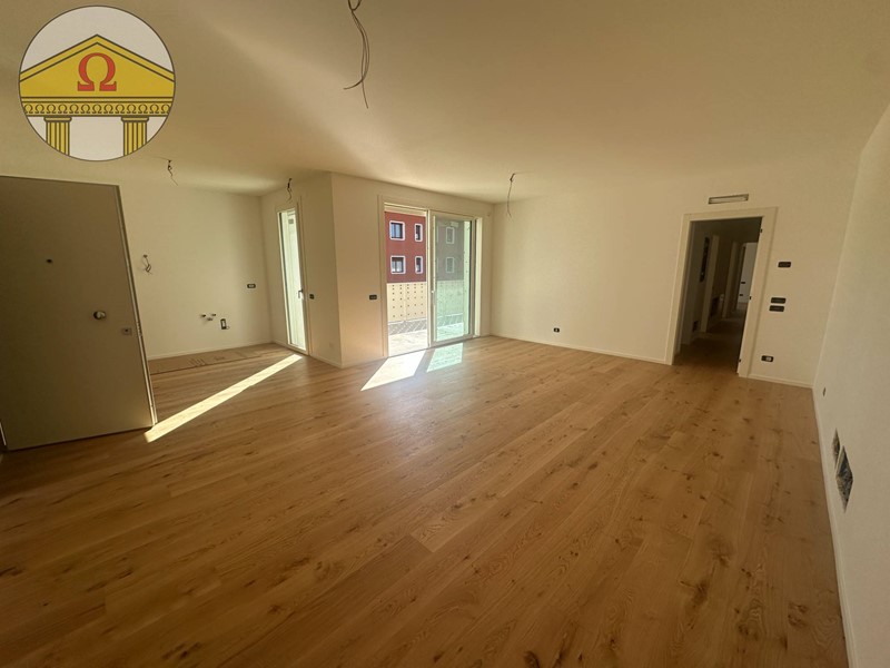 CARITA' DI VILLORBA - Appartamento di nuova costruzione in residence di prestigio, piano primo con ascensore e terrazzo di 25 mq. L'abitazione si sviluppa su 105 mq calpestabili così distribuiti: ingresso su ampio soggiorno con zona cottura defilata, terrazzo abitabile, corridoio per armadiatura, tre camere (di cui una matrimoniale), due bagni finestrati, garage e posto auto interno al residence.