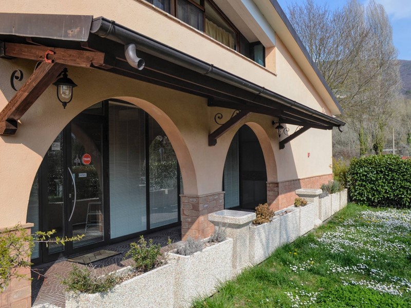 Nella periferia di Foligno a ca 15 minuti dal centro proponiamo in vendita locale commerciale di ca 400 mq e terreno privato di ca 5000 mq. La corte del locale commerciale è completamente recintata e ha circa 60 posti auto. Il locale commerciale è completamente ristrutturato, interni con pavimenti in legno, bagni anche per disabili e impianti sia interni che esterni a norma di legge. La proprietà è completata da un appartamento bilocale al piano primo. L'immobile si presta a vari utilizzi commerciali o ristorativi.