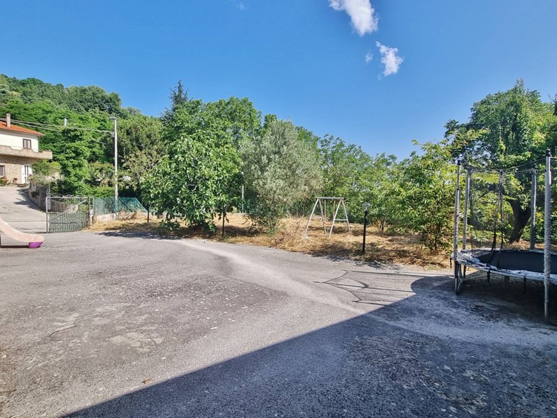 Nel mezzo delle due abitazioni vi è un garage doppio di circa 35 mq. Le due abitazioni condividono un cortile di circa 300 mq in parte pavimentato ed in parte giardino. Il tutto recintato con ingresso da strada comunale. La zona è dotata di tutte le utenze e dell'illuminazione pubblica.