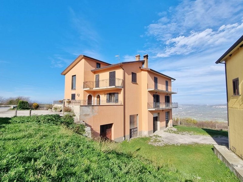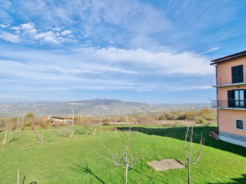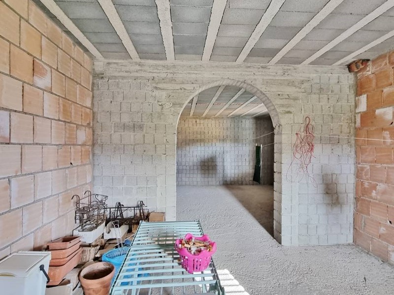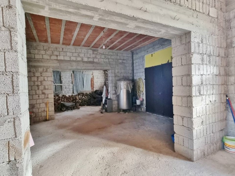 Al piano seminterrato ampi locali ad uso garage e deposito con predisposizione per la realizzazione di una tavernetta. L'abitazione è circondata da un terreno semi pianeggiante di circa 3.500 mq. con frutteto e qualche ulivo. L'immobile gode di un'ottima esposizione, irradiato dal sole nell'arco di tutta la giornata.