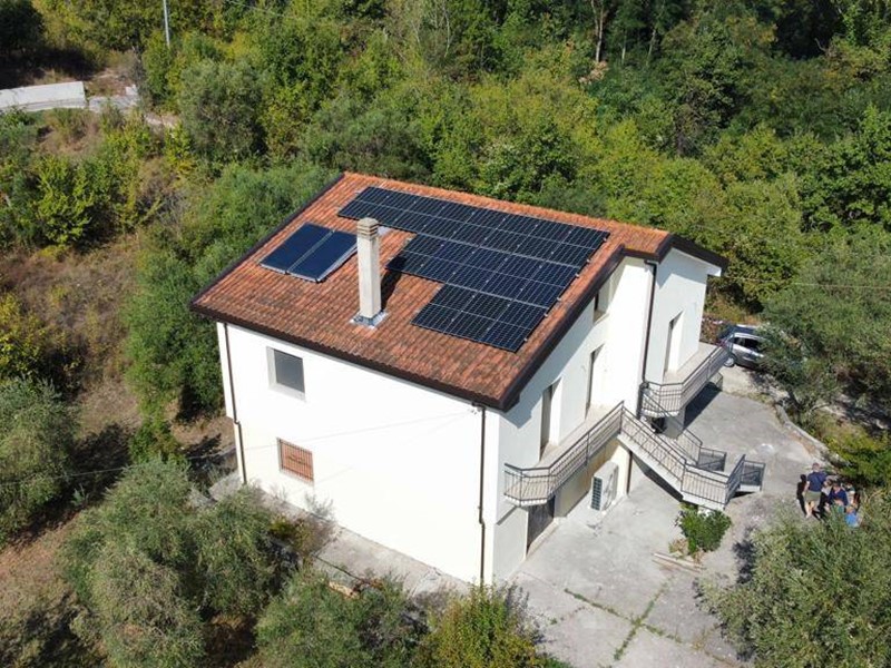 Il piano superiore (circa 80 mq) ospita un luminoso salone, cucina abitabile, due comode camere da letto e bagno.