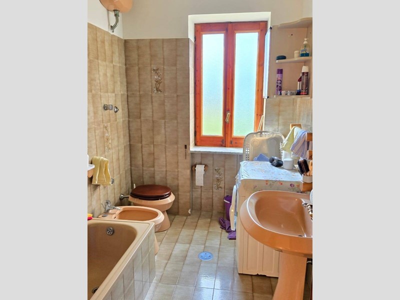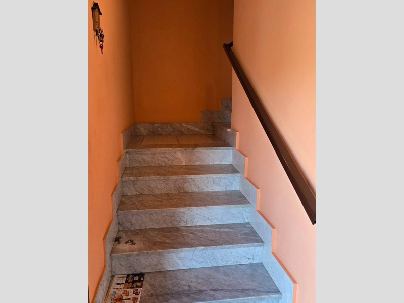 Il primo piano, di 110 mq, è dedicato alla zona abitativa e si compone di una cucina abitabile, un soggiorno con camino, due camere da letto con balcone, una cameretta e un bagno con vasca.